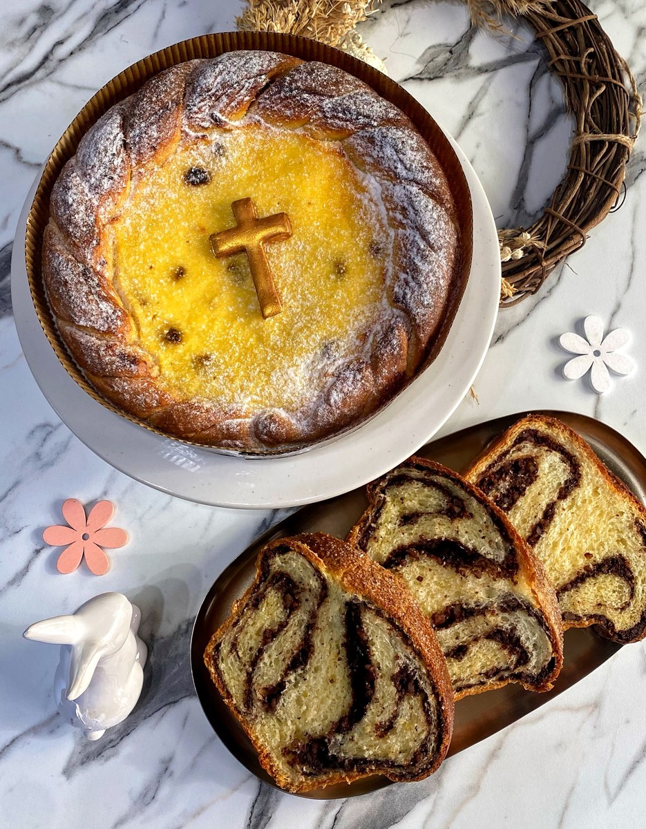 Pasca cu aluat subtire la baza, branza dulce, stafide